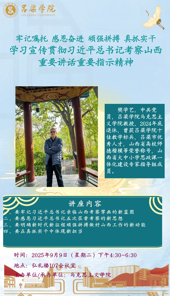 樊学艺教授《学习宣传贯彻习近平总书记考察山西重要讲话重要指示精神》讲座的通知