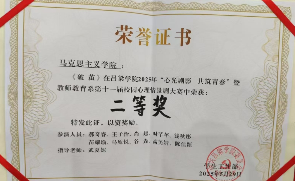为深入贯彻落实《全面加强和改进新时代学生心理健康工作专项行动计划(2023—2025年)》(教体艺〔2023〕1号)的文件精神,落实五育并举育人理念,不断扩大心理健康教育的覆盖面、受益面,提高师生心理健康水平,5月31日,我校举办2025年“心光剧影 共筑青春”校园心理情景剧大赛决赛,我院心理剧作品心理剧《破茧》《心墙》进入校决赛。