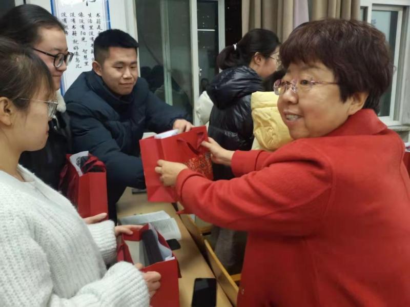 其次,副书记宫东红宣布2022届毕业生就业结对帮扶计划和安排。担任就业帮扶指导教师的成员由系领导、分团委书记、辅导员和毕业班主任组成,并对具体安排做了详细说明。同时,她说到:冬日窗外寒冷,但室内暖意洋洋,犹如春暖花开。礼物虽小,但含有老师们的浓浓情意,也有学弟学妹的真诚祝福,送去的是心意,收获的却是美好的未来。