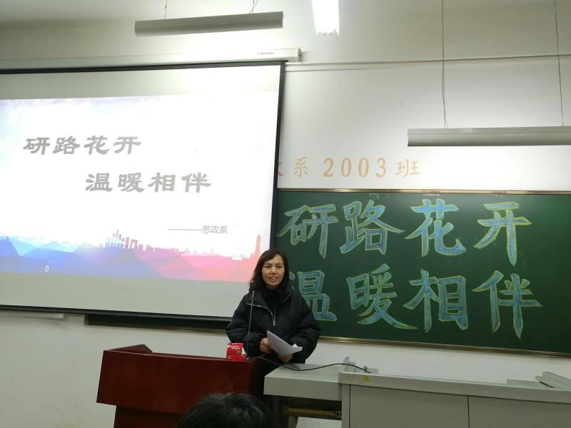 最后,系主任翟翠玲做总结讲话。她指出:首先就业结对帮扶目的性、针对性很强,要落实落细;同时值此之际,经过系部沟通交流,以这种方式送祝福、送温暖,主题明确,意义深远,是思政系首次。考研是继高考后学子们的又一重要抉择,关于考研的重要性不言而喻。研路“难”,但对于每个人的机会都是公平的,也不需要将“难”放大。她提出在考研路上要做好:一是调整好心态,要保证作息时间科学、适度,要保留适度焦虑,要客观对待某些事情;二是坚持走下去,要走好考研路、走好奋进路;三是坚守初心,行百里者半九十,要目标坚定、咬紧牙关、持之以恒。