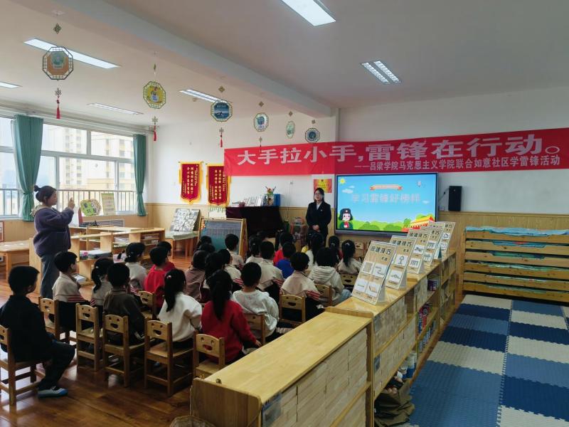 在离石区北城第二幼儿园,我院志愿者为幼儿园小朋友们进行了学习雷锋宣讲及文艺展演活动。