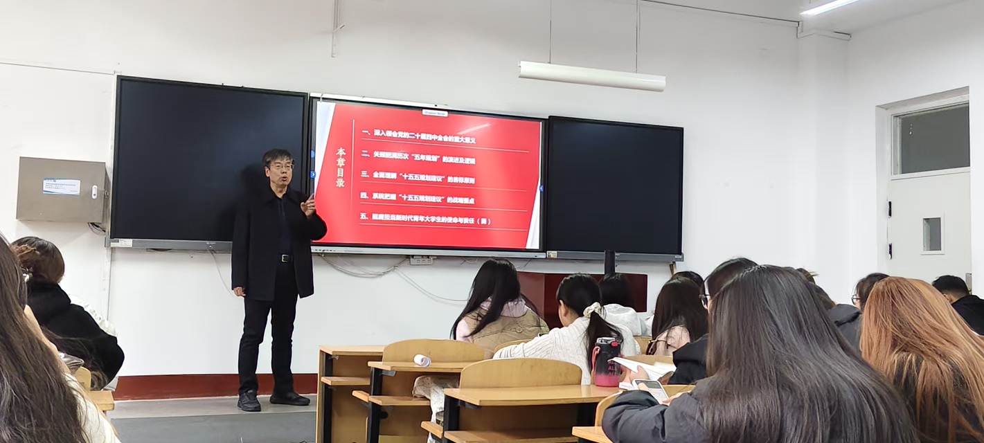 赵跃先教授讲述了党的二十届四中全会融入思政课的重要性,从多角度、分层次讲解了党的二十届四中全会精神融入思政课的知识点与相关内容,特别是融入《习近平新时代中国特色社会主义思想概论》课程经济建设部分的思路与方法。