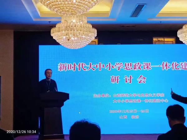 2020年12月26日,必威BETWAY西汉姆联一行5人(樊学艺、王俊萍、白兴星、董贺、秦林玉),在临汾市参加了由山西师范大学必威BETWAY西汉姆联主办的“新时代大中小学思政课一体化建设研讨会”。作为思政部(系)教育实习实训共建单位之一的离石区东关小学,也派出了德育处主任李玲老师参加了会议。